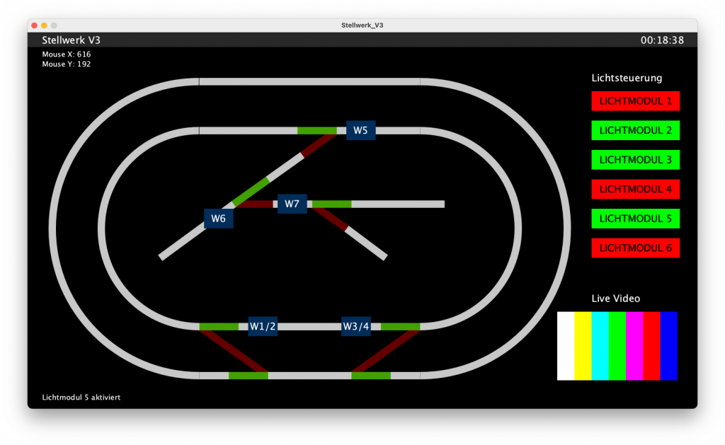 Natürlich kann die grafische Oberfläche noch ausgebaut werden, z.B. mit der Darstellung des Gleisplans und einer Animation der momentanen Richtung der Weiche. Den Großteil habe ich mit ganz normalen Linien realisiert.
